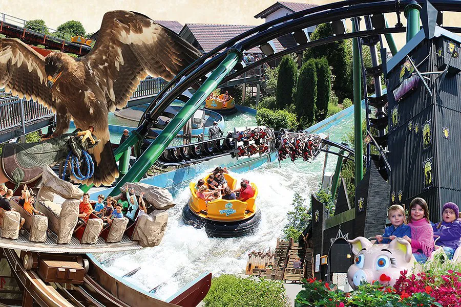Dieser Freizeitpark holt alle ab: Flugschau mit Greifvögeln, Wildwasserbahn, Nervenkitzel im Rollercoaster, Waldabenteuerspielplatz, Tiere zum Streicheln und Beobachten und vieles mehr.