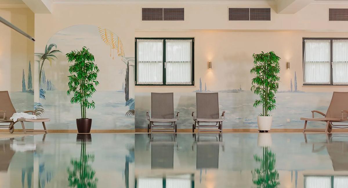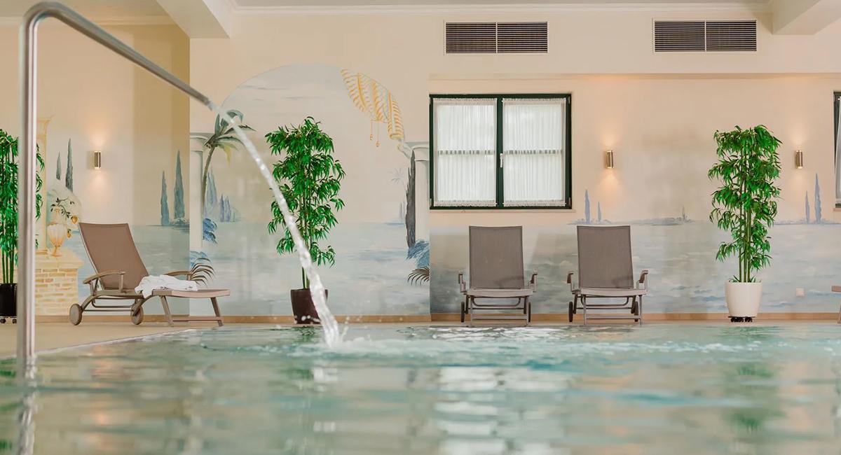 Tauche ein in die wohltuende Wärme unseres großzügigen Thermalhallenbads und erlebe, wie Körper und Geist ins Gleichgewicht kommen. Das circa 32 Grad warme Wasser auf Schwefelbasis entspannt die Muskulatur, stärkt die Abwehrkräfte und sorgt für ein Gefühl tiefer Erholung.
