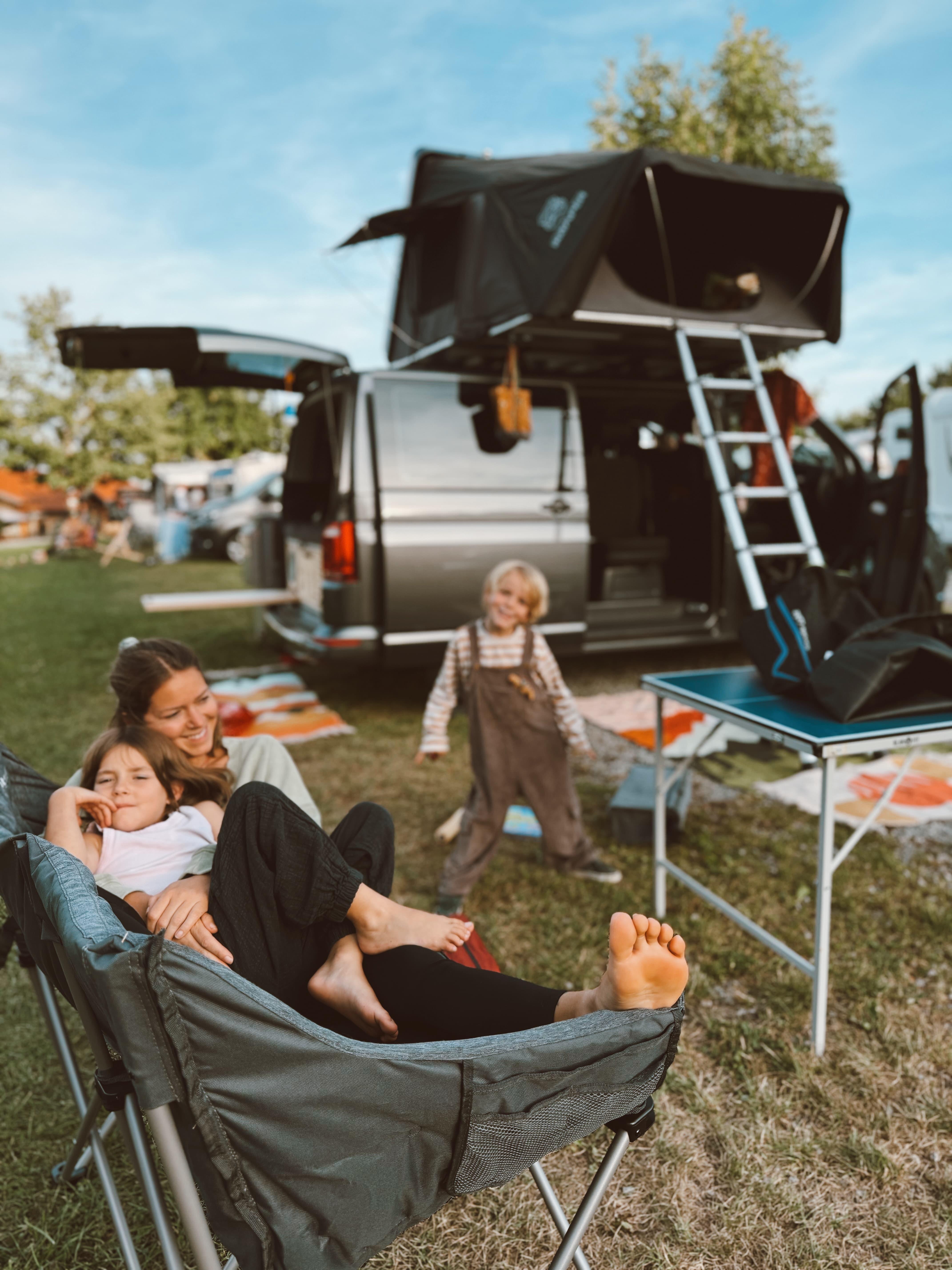 Sonnenglitzer auf dem Badesee, Kids am Spielplatz, Hunde im Pool, Chalets im Abendlicht – alles echt, alles zum Greifen nah.